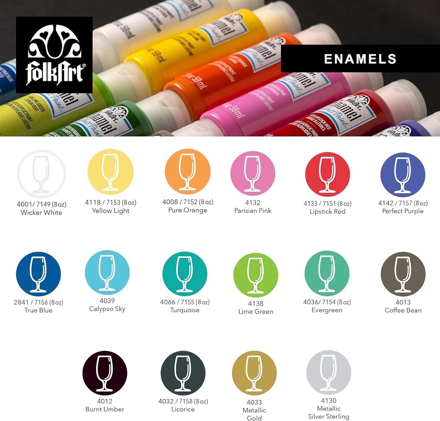 Discover vibrant creativity with the FolkArt Gloss Finish Acrylic Enamel Craft Set, perfect for both beginners and artists. This 16-count set features 2 oz bottles of non-toxic, brilliant gloss paints ideal for glass and ceramic projects, delivering durable, scratch-resistant, dishwasher-safe finishes after oven curing. Made in the USA, FolkArt ensures easy cleanup and premium quality, making it a trusted choice for beautiful, lasting handmade crafts.