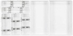 • Are the shelves adjustable to fit in tight cabinets? Yes, this storage solution includes two sizes so you can stack, nest, or separate to fit nearly every cabinet or pantry.