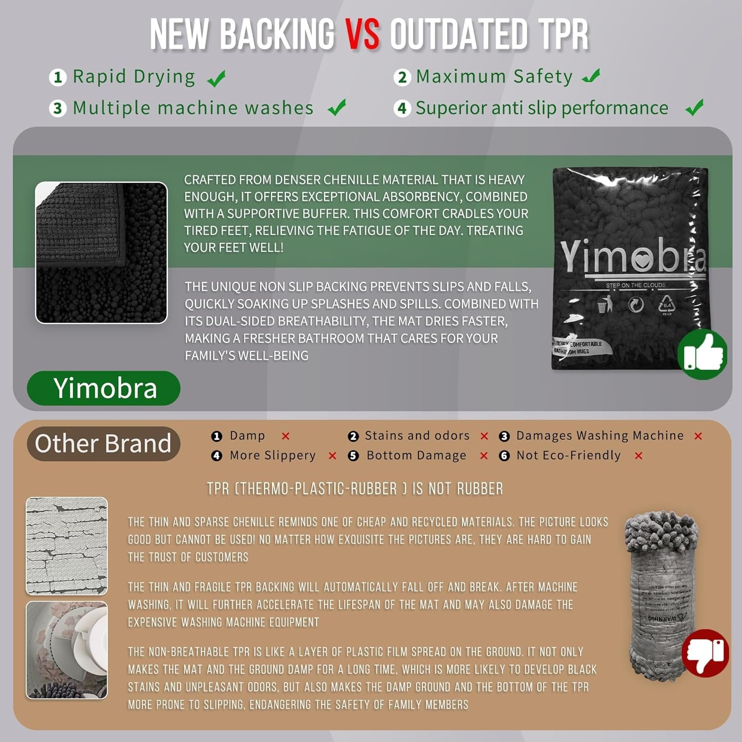 We compared this product to other top-rated picks such as the Smiry Luxury Chenille Bath Rug, OLANLY absorbent non slip rugs, and the Subrtex machine washable rug set. Yimobra stands out with its superior thickness, plush comfort, and ultra-durable adhesive backing that beats standard plastic or TPR bases for long-term reliability.