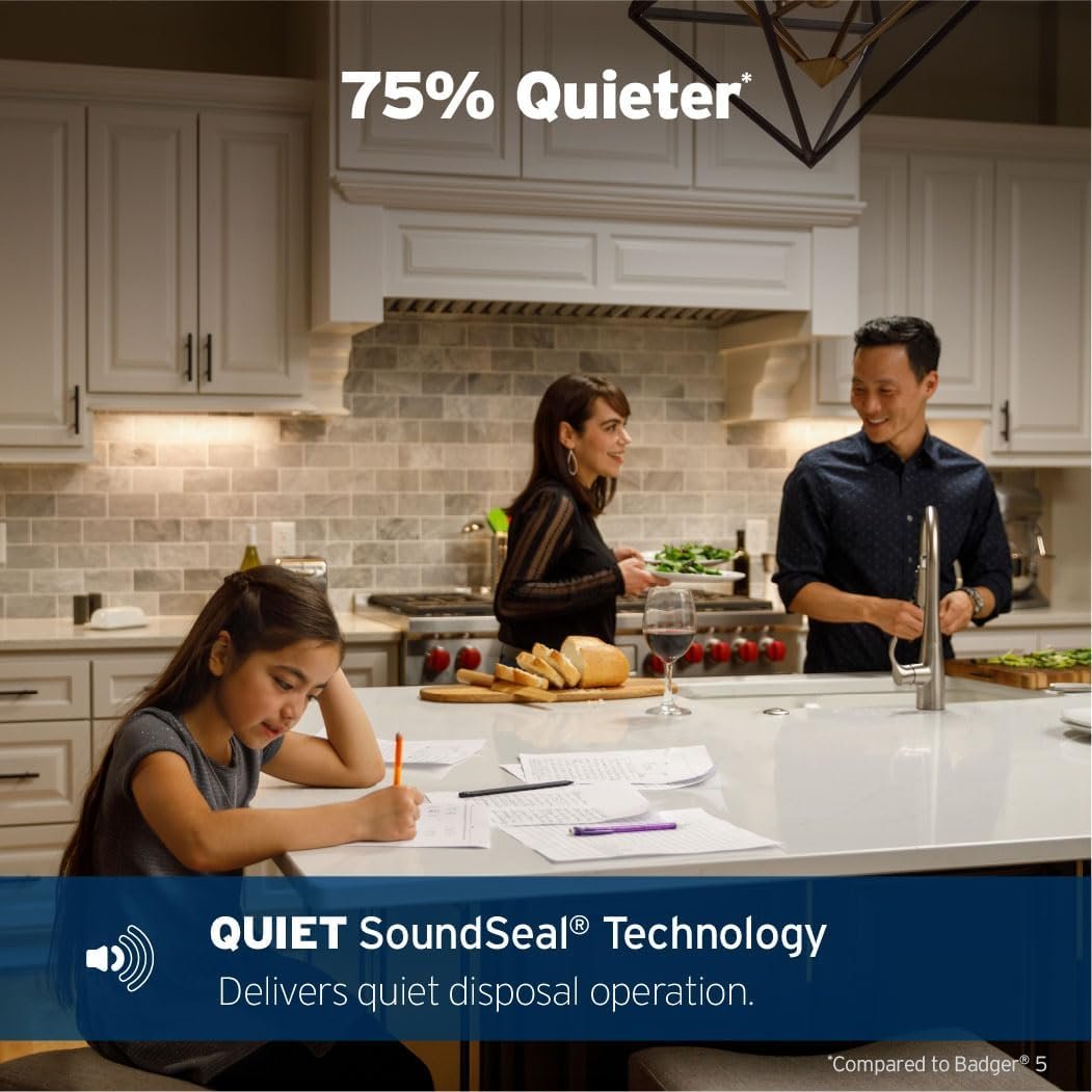 - Quiet Operation: Quiet SoundSeal reduces operational noise compared to standard options, so you can dispose of food waste without disturbing your household.