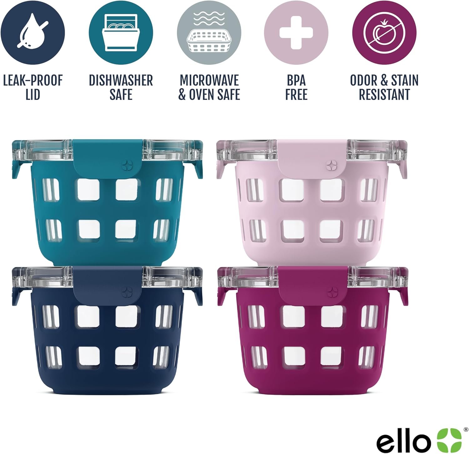 The Ello Duraglass 4-Pack 2 Cup Reusable Glass Container Jars from the Ello Store offer a stylish and practical solution for meal prepping and food storage. Made with high-quality tempered glass and BPA-free airtight, leak-proof lids, these containers keep your food fresh and odor-free while being freezer, microwave, and dishwasher safe. The colorful silicone sleeves provide extra protection against chips and add a fun touch to your kitchen essentials. Perfect for overnight oats, yogurt, and more, these durable jars combine convenience with quality design.