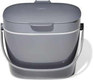 If you need a larger model, consider the Simplehuman 4L Compost Caddy or look at the Bamboozle Bamboo Compost Bin for a plastic-free kitchen focus.