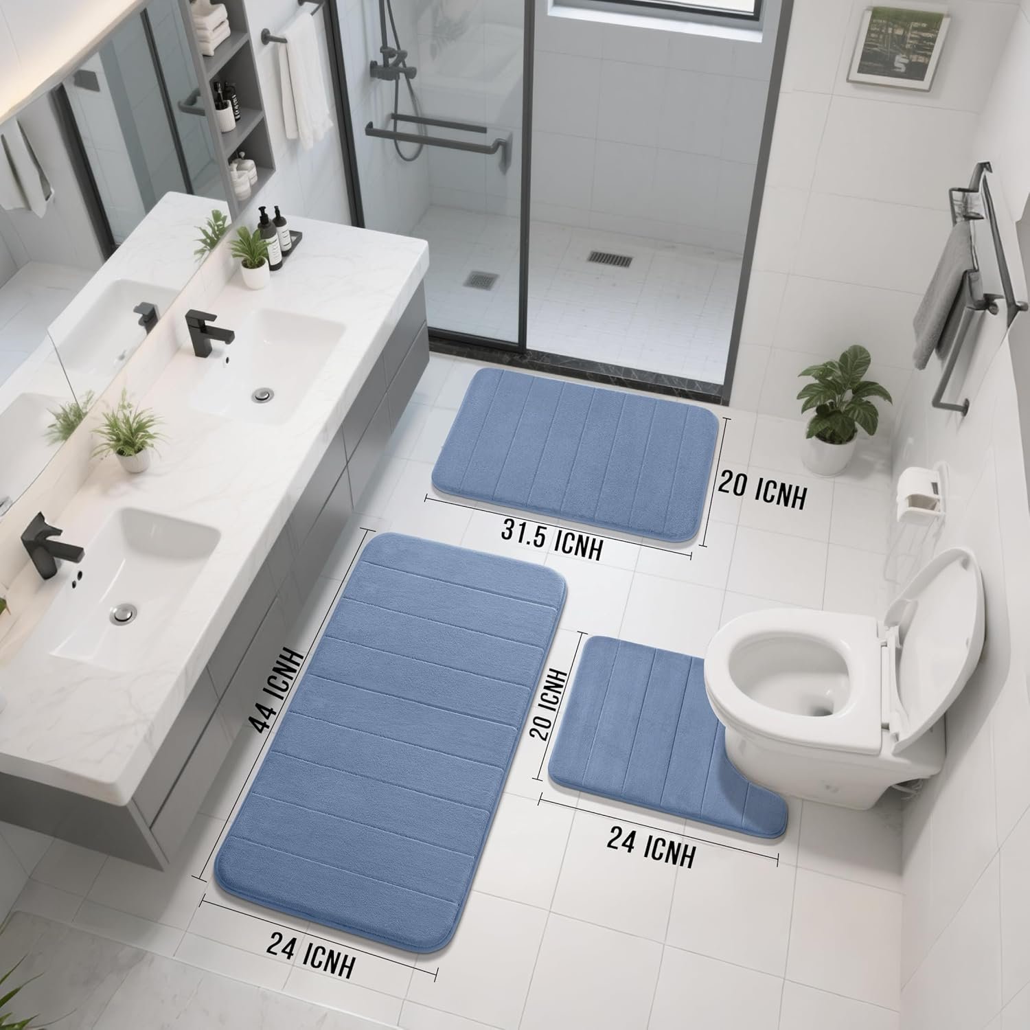 The Yimobra 3 Pieces Memory Foam Bath Mat Set offers exceptional softness and superior water absorption, thanks to its plush velvet surface and cozy memory foam. Designed for safety and comfort, these non-slip, quick-dry bathroom rugs come with strong PVC backing and are perfect for any bathroom, vanity, or toilet base. Easy to machine wash and available in a stylish denim blue, this versatile set is backed by Yimobra’s 10-year, no-questions-asked guarantee, making it an ideal choice for comfort and peace of mind.