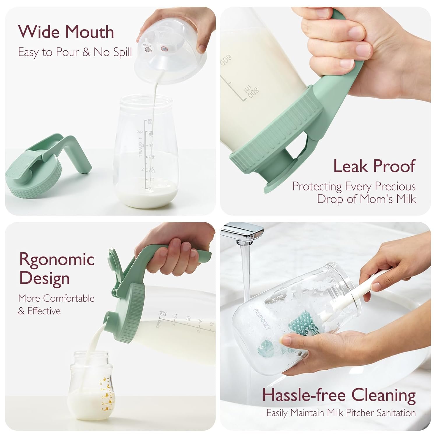 The Momcozy Breast Milk Pitcher from the Momcozy Store is a durable, heat-resistant glass container designed for new moms. Made from high-grade borosilicate, it withstands sudden temperature changes and features a leak-proof, thickened sealing strip to keep milk fresh. Its wide-mouth design allows for easy pouring and cleaning, while its ergonomic handle adds comfort. Perfect for storing breast milk, juices, and even making baby formula, this BPA-free pitcher is an essential, versatile tool for hassle-free breastfeeding.