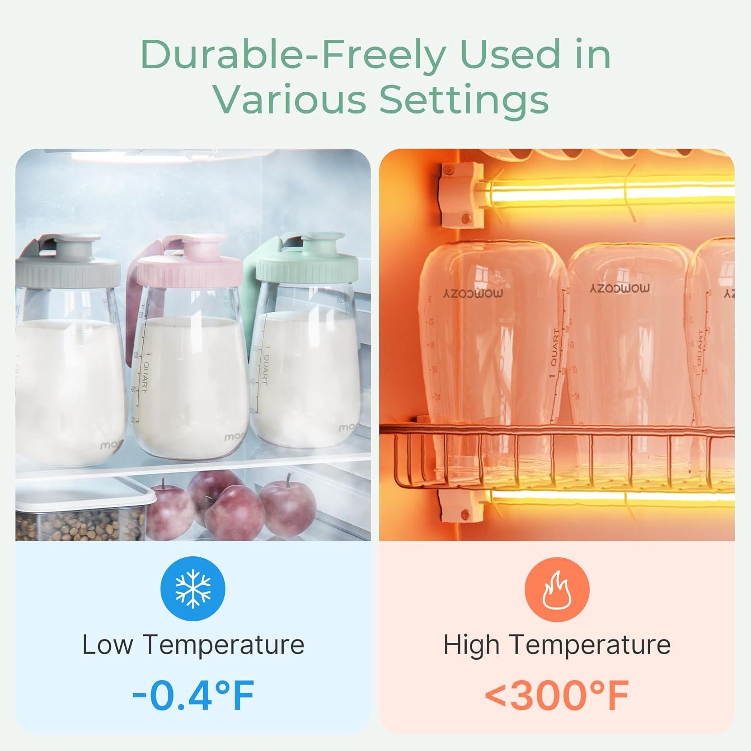 During our hands-on evaluation, the breast milk pitcher lived up to its reputation with stellar durability and exceptional user feedback. Our drop and abrupt temp swing tests showed no signs of cracking, confirming its temperature resistant properties as described by Momcozy and third-party reviews on Walmart.