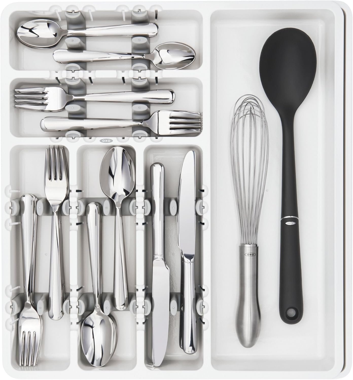 In the increasingly crowded world of expandable organizer designs, OXO Good Grips stands out for quality and real innovation. While most basic flatware holders offer only fixed slots or inflexible designs, this tool expands to fit nearly any drawer and keeps items secure thanks to non-slip feet and thoughtful division.